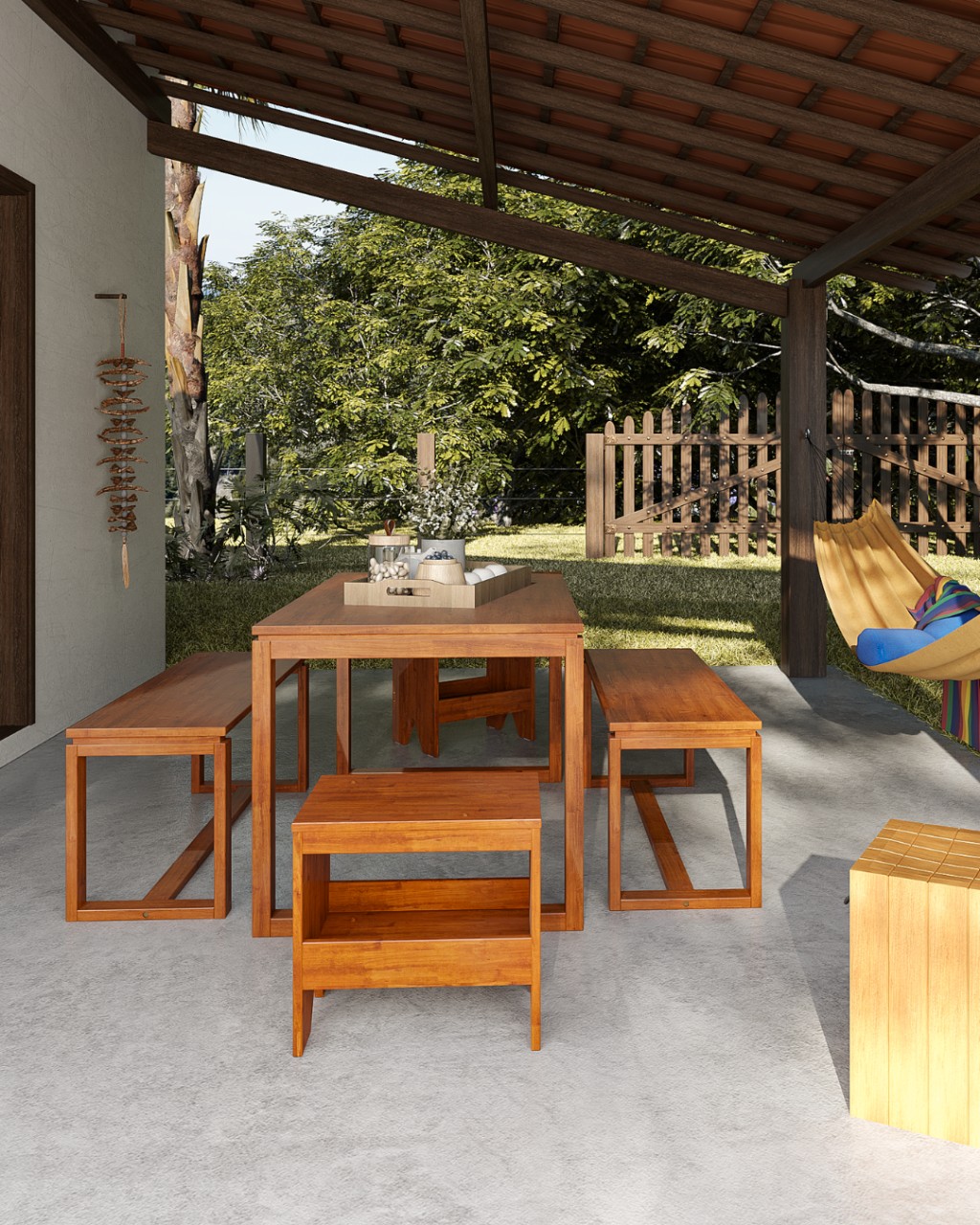 Em áreas gourmet, especialmente externas ou semiabertas, assentos sem estofado são escolhas inteligentes. Além de mais resistentes e fáceis de manter, elas contribuem para uma estética mais leve e contemporânea.