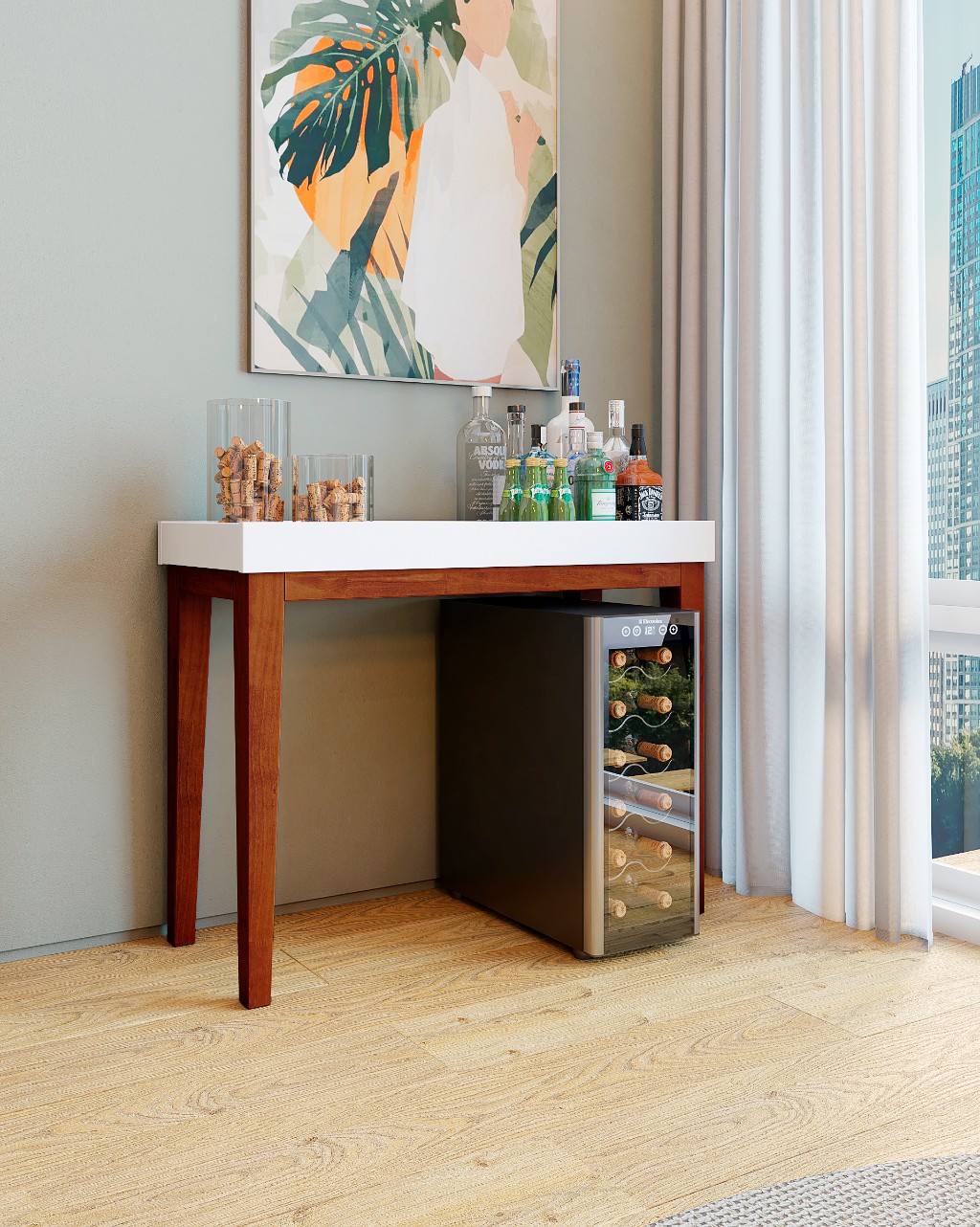 O Aparador Fresh se destaca nesse papel versátil: pode ser utilizado como apoio de pratos e talheres ou assumir a função de bar em momentos mais descontraídos.