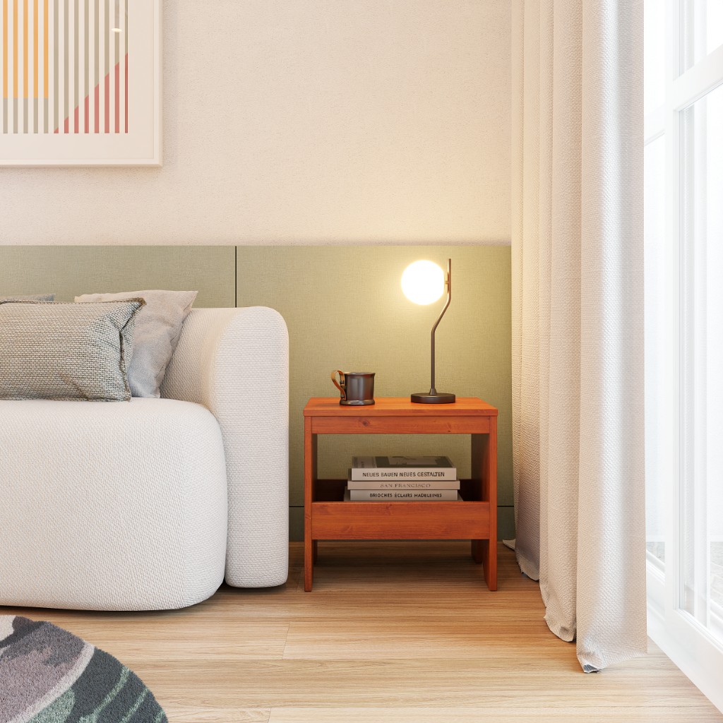 Ao utilizar uma mesa de cabeceira da Artemobili como apoio ao lado do sofá, você mantém o design sofisticado da madeira maciça, mas ganha armazenamento discreto para controles, cabos, documentos e pequenos objetos do dia a dia. Para salas menores, essa escolha é estratégica.