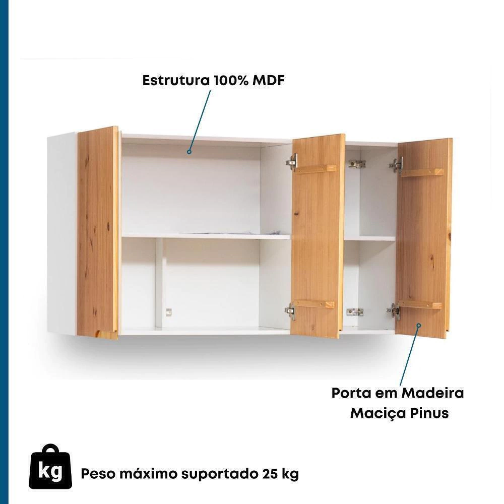 O Armário Aéreo 3 Portas Linha Ikigai – Artemobili combina leveza estética e funcionalidade para compor cozinhas modernas e bem organizadas. Com estrutura em MDF na cor branca e portas em madeira maciça na tonalidade Carvalho, o móvel valoriza o contraste entre o claro e o natural da madeira, trazendo aconchego e elegância ao ambiente. Seu design conta com puxador embutido, garantindo um visual mais limpo e contemporâneo. O armário possui 3 portas com prateleiras internas, oferecendo ótimo espaço para organizar louças, utensílios e mantimentos do dia a dia, além de dobradiças metálicas que proporcionam maior resistência e durabilidade no uso.