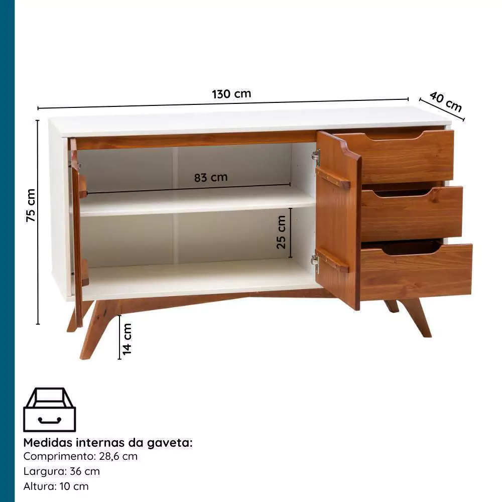 Dimensões Móvel Montado (LxPxA): 130,0cm x 40,0 cm x 75,0cm