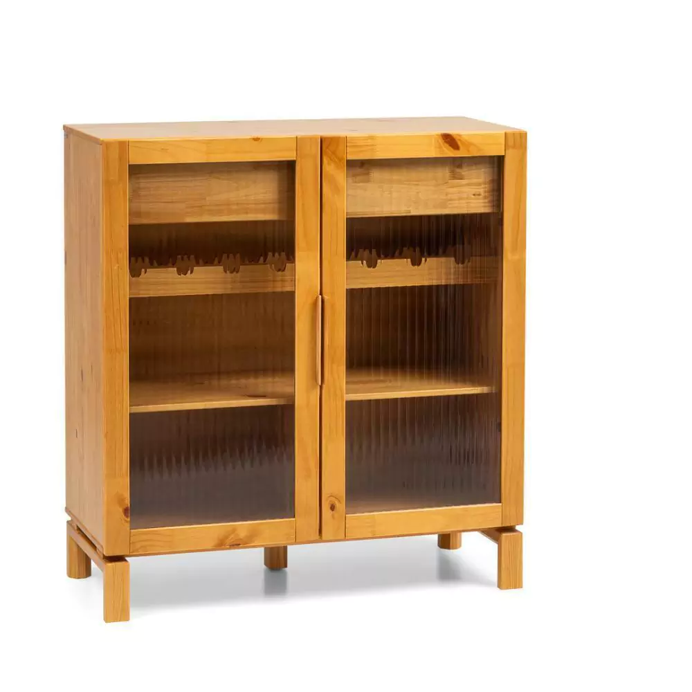 A Linha Piazza segue a tendência do design contemporâneo, mescla a delicadeza da madeira maciça Taeda com a modernidade do vidro canelado.