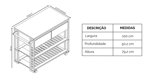 Dimensões Móvel Montado (LxPxA): 100 cm x 50,2 cm x 79,2 cm