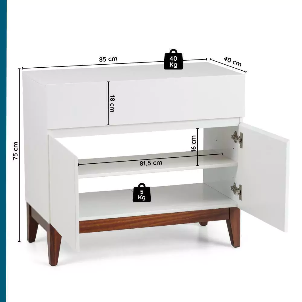 Dimensões Móvel Montado (LxPxA): 85 cm x 40 cm x 75 cm
