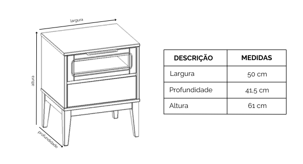Dimensões Móvel Montado (LxPxA): 50 cm x 41,5 cm x 61 cm