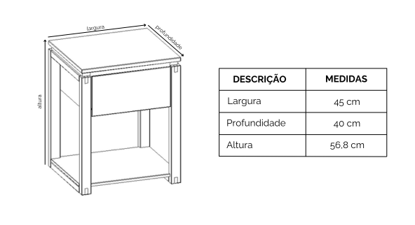 Dimensões do Móvel Montado: (LxPxA): 45 cm x 40 cm x 56,8 cm