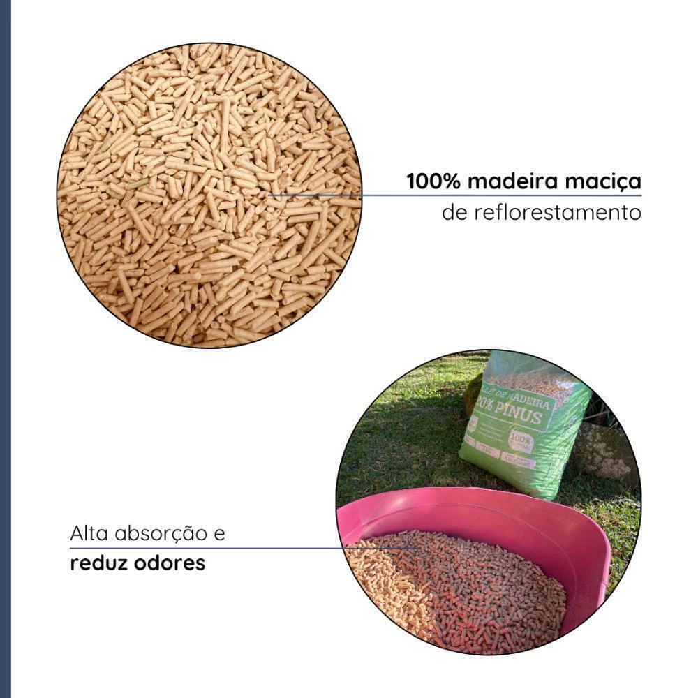 Com a madeira que sobra da produção dos nossos móveis, produzimos Pellets higiênicos que substituem a areia do seu gato, trazendo mais conforto, economia e praticidade. Também indicado para coelhos, hamsters e porquinhos da índia. É um produto 100% natural, biodegradável e sustentável, de fácil descarte.